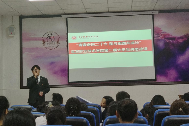 为深入贯彻落实习近平总书记关于“大思政课”建设的重要指示批示精神,充分发挥高校思政课立德树人关键作用。5月31日,由马克思主义学院承办的“青春奋进二十大·我与祖国共成长”——宜宾职业技术学院第二届“大学生讲思政课”公开课比赛决赛在思政中心举行。参赛选手们分别从不同角度切入,讲授了大学生心中的思政课。