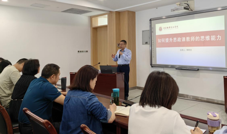 林世全书记旁征博引,将生活中的经历化为案例,既深入浅出讲解了提升思政课教师思维能力的道与术,又为全体思政课教师呈现了一堂完美的思政示范课。讲座结束后,各教研室组织教师就培训内容开展研讨。老师们纷纷表示,在培训中既学到了实用的教学方式,又拓宽了视野,启迪了思维,提升了能力,更加明确了思政课教师的责任使命,要努力讲好思政课,当好学生成长的引路人。