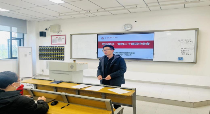 为深入学习贯彻党的二十届四中全会精神,切实将全会提出的重大理论观点和战略部署有效融入思想政治理论课教学,2025年11月26日,马克思主义学院毛概论教研室在崇信楼103室召开专题教研活动,教研室全体教师参加活动,活动由教研室主任蔡杰老师主持,本次教研活动聚焦党的二十届四中全会精神领会与教学融入,凝聚共识,明确方向,着力提升思政课育人实效。