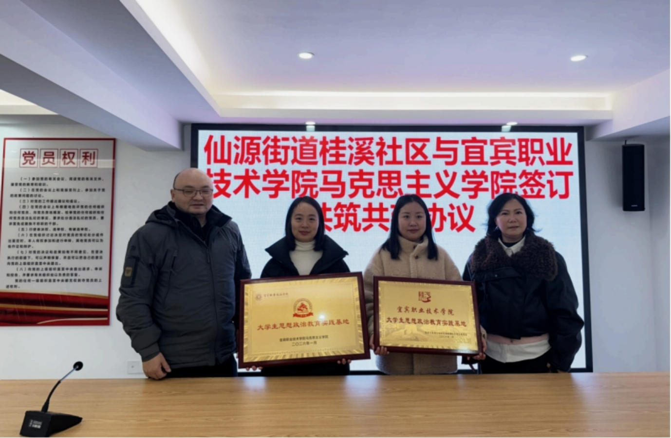 为深入落实立德树人根本任务,践行总体国家安全观,推动高校教育资源赋能基层治理,创新实践育人机制,我校马克思主义学院与南溪区仙源街道桂溪社区于近日正式签订共建“安小家”社区实践基地合作协议,标志着校地协同育人合作迈入实质推进阶段。